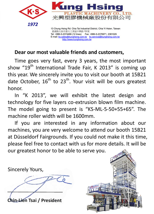 Welcome to Visit Our Booth in K Show 2013! We Sincerely invite You to Come