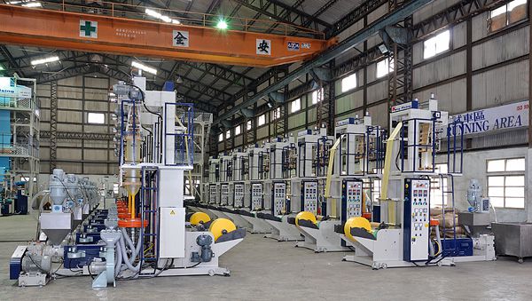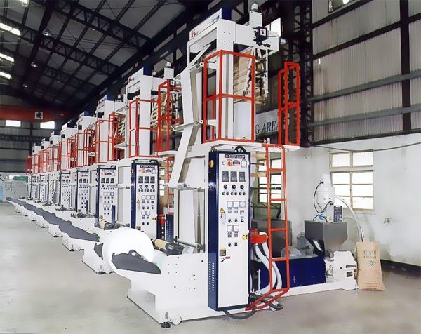 自動料斗裝載機、表面電暈處理機、壓花滾輪、旋轉模頭具座, LD / LLDPE模具與空氣環, 可調式引取機組、色母進料裝置、手動/自動捲線機 |